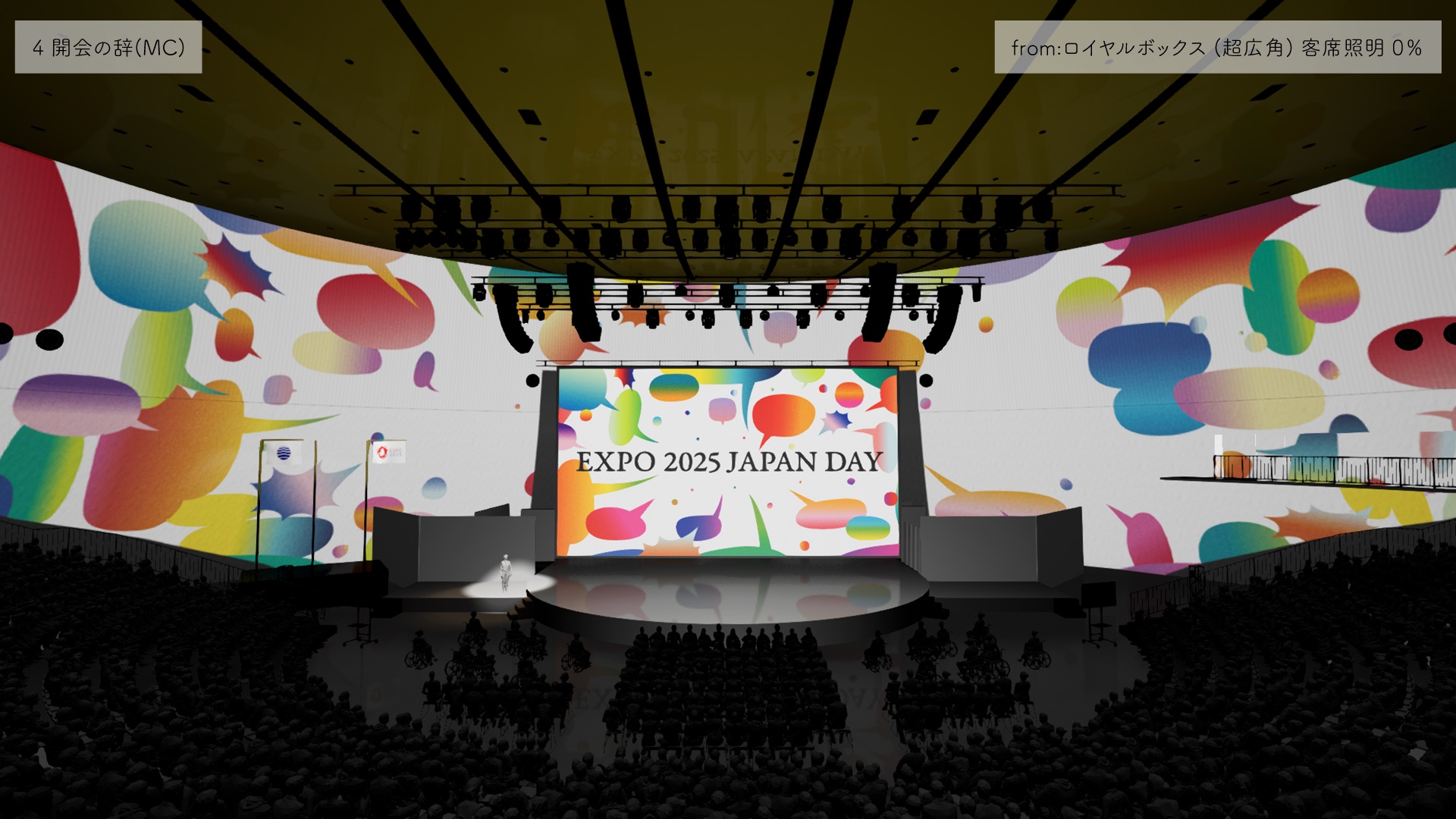 We used Unreal Engine to develop a production simulation for Japan Day, the national day of Japan, the host country of the Osaka-Kansai Expo. Due to scheduling constraints, there was no time for rehearsals for the event, so all production aspects had to be simulated in advance.