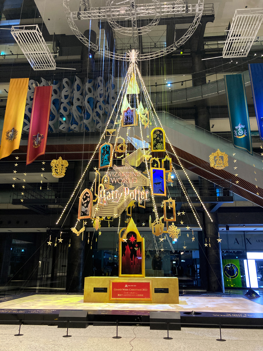 Grand Front Osaka is holding a Christmas event in collaboration with Harry Potter. A 13m-tall main Christmas tree called the “Floating Magic Tree” is set up in the main square, and is decorated with motifs from the Harry Potter stories. The tree is decorated with light objects and classical electric lights, and the space is filled with lighting and video effects, creating a magical worldview through a light and sound lighting show.