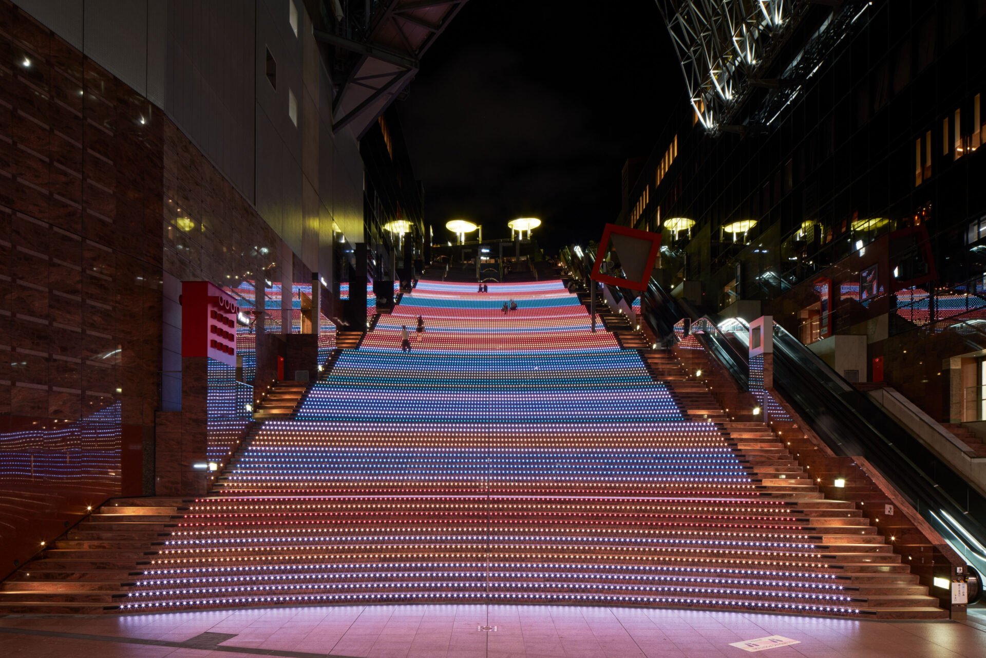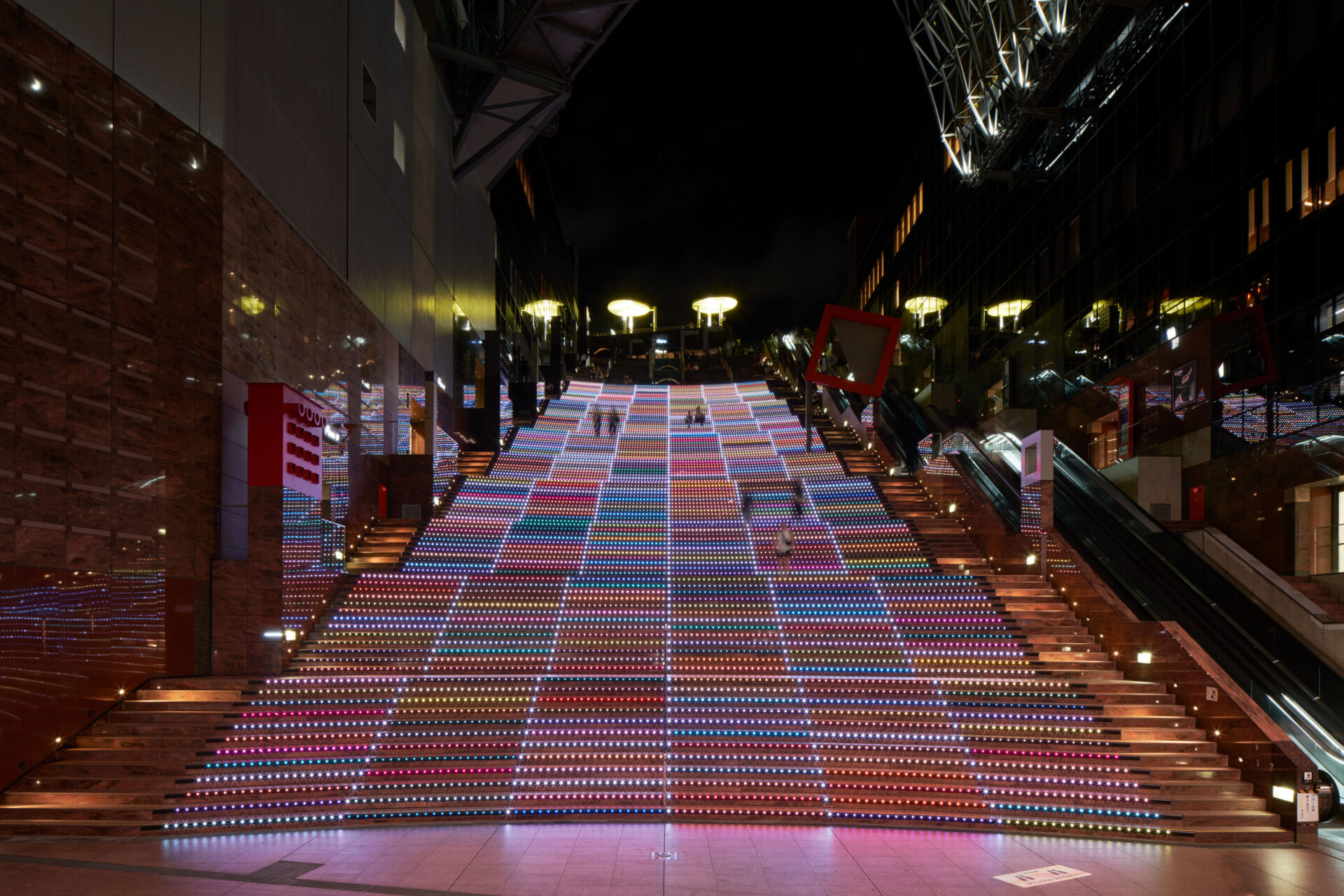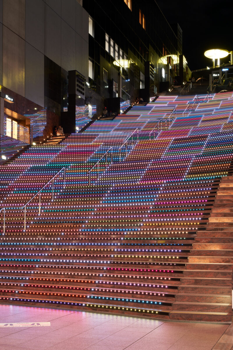 “KYOTO COLORS” is a production that expresses the essence of Kyoto using over 200 colors associated with Kyoto. Set at Kyoto Station, which is a popular tourist destination, machine learning was used to extract and utilize the color that best represents Kyoto from the 200 colors, conveying the charm of Kyoto to visitors.