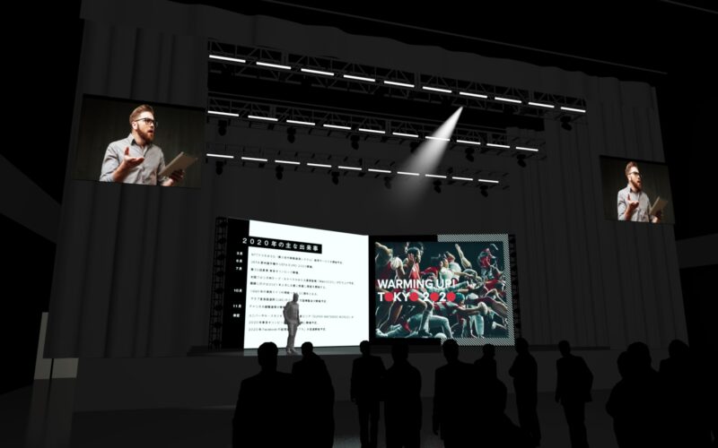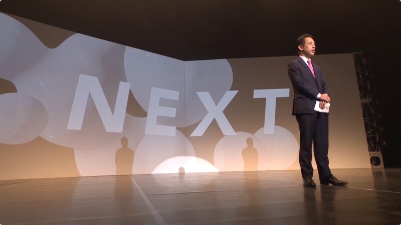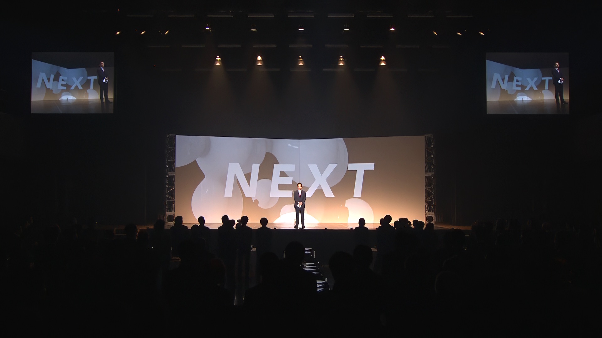 The Hearts Group’s New Year event was renewed and relaunched under the new name “NEXT.” The entire creative side of the event was directed, from concept planning and production planning, to stage design, direction, and video content. On the stage at Dojima River Forum, a symbolic projection mapping display was set up. The program included a presentation by the group’s leader, a dance performance, and an e-sports gaming segment. Based on the theme of “Modern,” the video content was made up of modern, generative artwork created through programming.