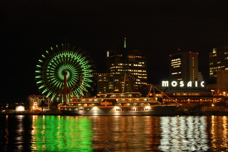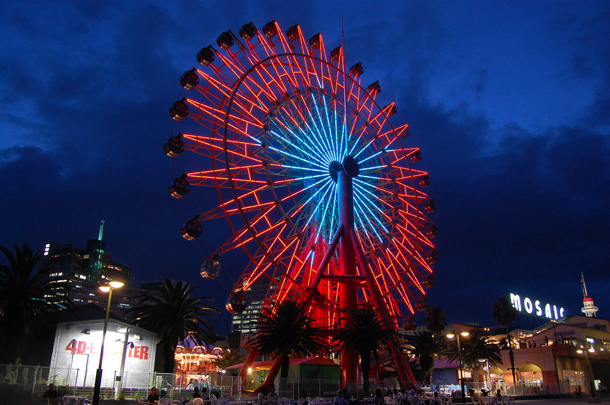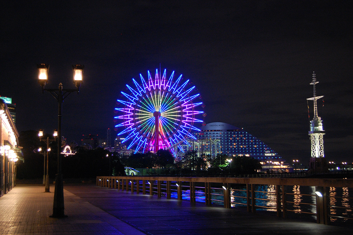 輪郭が際立つ「シルエットアニメーション」を取り入れた観覧車イルミネーション。従来のネオン管からLED照明にリニューアルし、映像の描写面積が非常に少ない観覧車に日本で初めてアニメーションによる演出を試みた。「神戸らしさ」をコンセプトに、人・街・時の3つのテーマで構成され、従来の機械的な照明演出ではなく、映像コンテンツによる演出によって、観る者にノスタルジックな雰囲気と悠久の時を感じさせる仕掛けを施した。